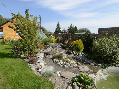 - Сухие ручьи: Создание сухого ручья с использованием камней различных размеров добавляет динамику и глубину в ландшафт. Это также помогает с дренажем, предотвращая затопление участка.
