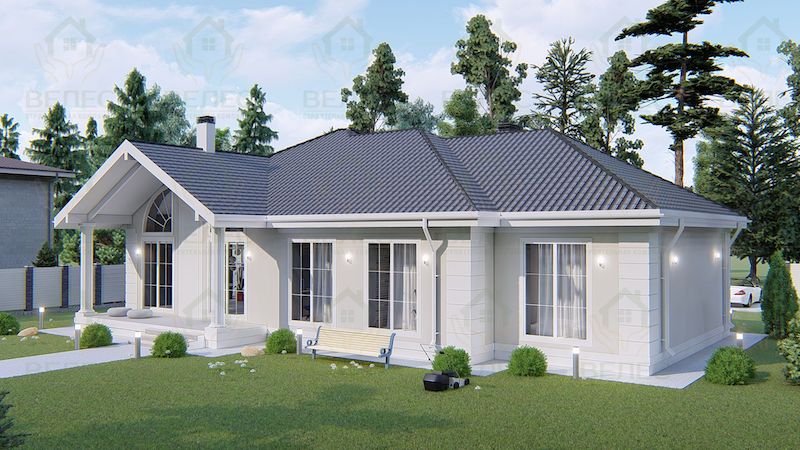 - Финальный этап — внутренняя и внешняя отделка. Внутри стены штукатурятся или обшиваются гипсокартоном, укладываются напольные покрытия, устанавливаются межкомнатные двери. Внешняя отделка включает утепление (если оно не было сделано ранее) и облицовку фасада: штукатурку, сайдинг, кирпичную кладку или деревянную обшивку. На этом же этапе благоустраивается прилегающая территория: прокладываются дорожки, устанавливается забор, высаживаются растения.